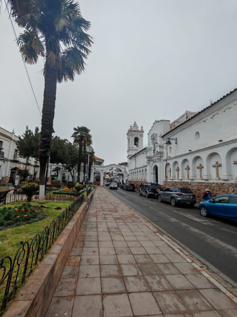 Sucre városába érve a pályaudvaron jegyet váltottam estére, hogy folytassam az utam majd Uyuni felé, a bőröndömet a csomagmegőrzőben hagytam, és gyalog elindultam a belvárosba. Ezen városrészhez közeledve már látszottak a város látképét meghatározó hangulatos fehér házak, templomok. Így hát hamar elővettem a telefonom, hogy megörökítsem a látványt.